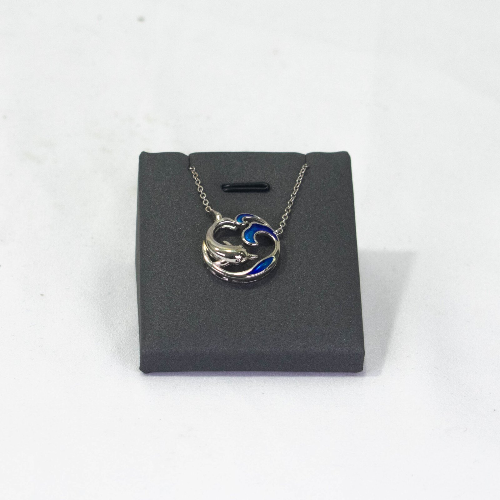 PENDANT AND NECKLACE SILVER DOLPHIN IN INSIDE THE WAVE ROYAL BLUE..